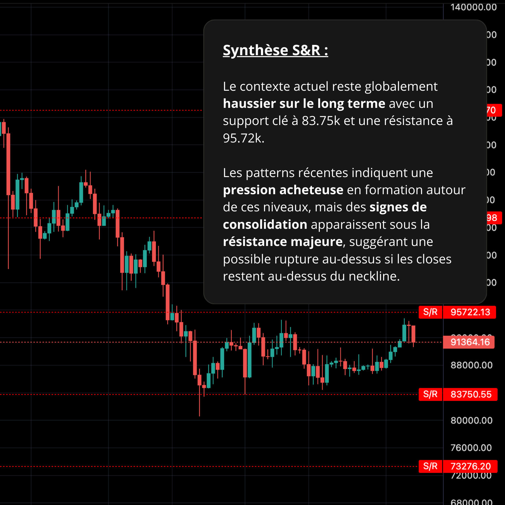 L’IA vous donne des scénarios clairs : rebond, cassure, continuation ou range. Vous savez exactement ce que le marché est en train de préparer.